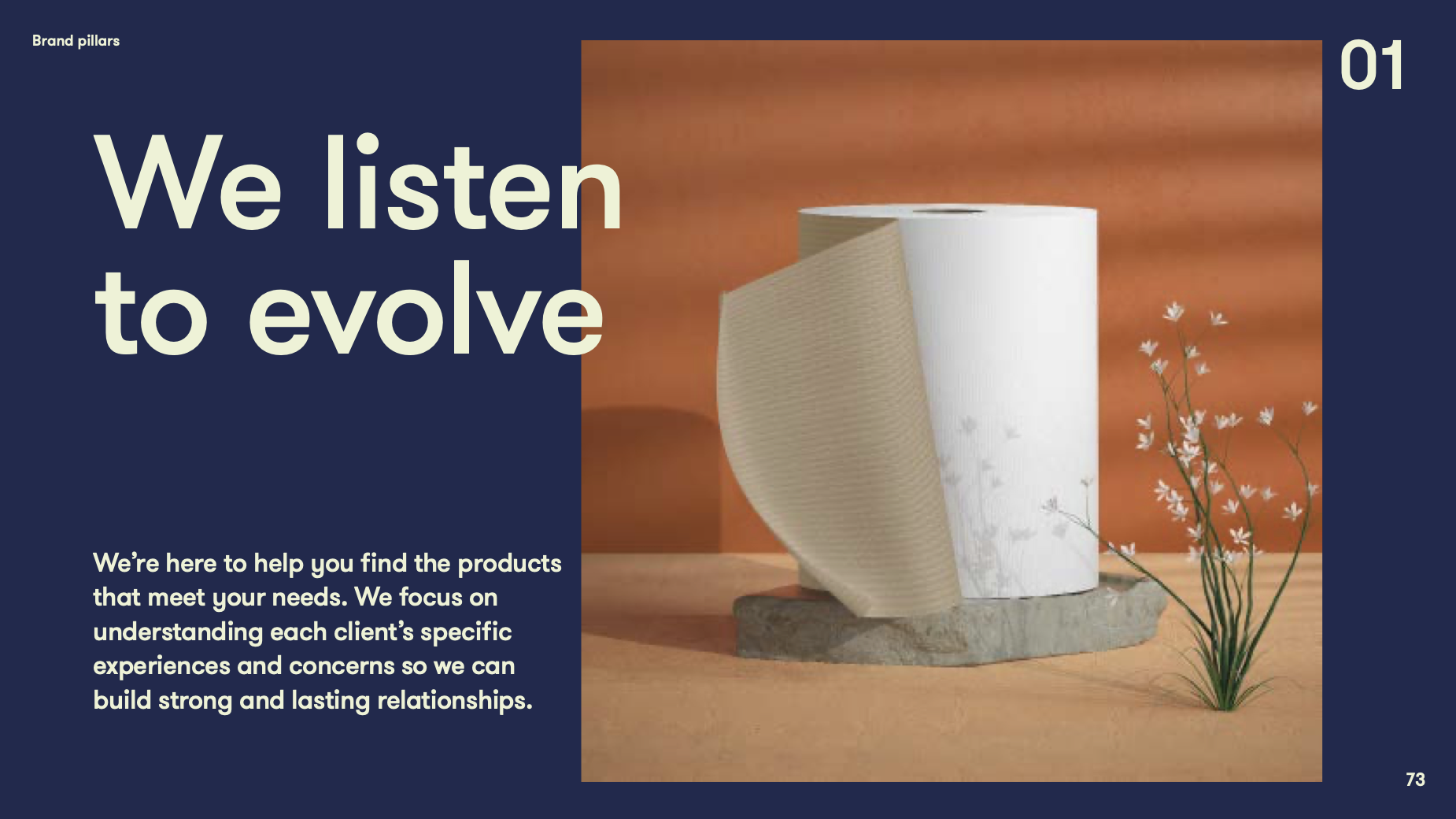 In 2020, when hand hygiene was top of mind, Cascades PRO (the paper giant’s B2B product line) set out to rebrand itself as the one most capable of providing companies with solutions when they needed them most. A complete rebrand and toolkit followed, including everything from an overarching brand mission, a sub-brand re-development, and the establishment of both the brand’s personality and voice.